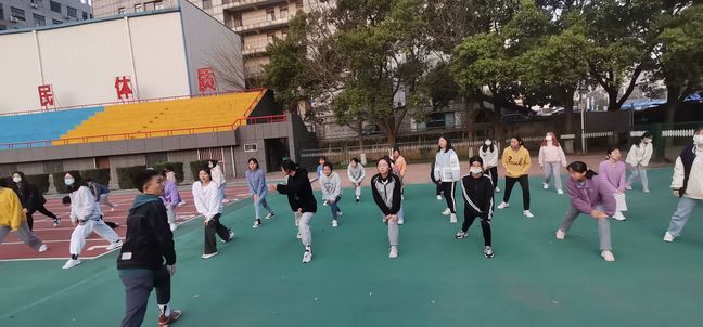 也就是从那天起,每天拂晓时分,师生们就换好衣服,来到操场,跑步、训练、压腿……等到身体微微出汗,便回宿舍换衣服,去食堂吃饭,再相约去教室上课。下了晚自习,再相约着去形体房、球场、操场,进行各类技巧练习,至宿舍锁门前赶回去。
