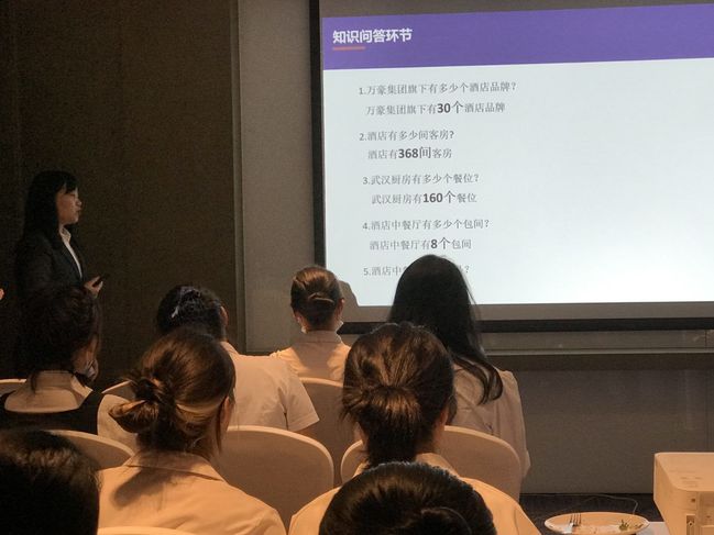 旅游学院师生受到卓尔万豪酒店管理层负责人、万豪校企合作方负责热情接待。万豪国际酒店集团人力资源经理Rosa向师生详细介绍了公司发展历程、管理架构及企业文化。她介绍到,从1927年初步建立到2016年完成对喜达屋酒店收购成为世界第一大酒店集团,万豪集团在全球拥有7600多家酒店。集团秉持“以人为本、追求卓越、拥抱变革、诚实守信,服务全球”的理念,逐步将万豪酒店打造成为全球最受欢迎的旅宿品牌。