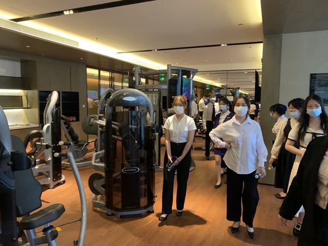 随后,师生一行在工作人员带领下参观了酒店大堂吧、行政酒廊、中西餐厅、客房、健身中心和员工区。酒店设计延续万豪品牌的高端精致,细节处融入了武汉深厚历史文化底蕴和地域特色,体现万豪集团对于地方文化的重视和理解。其中,员工活动区有序的现场、融洽的团队、温馨的环境,让学生们感受到了员工对于企业的重要性,掌握好专业技能的同时要有良好的团队意识。