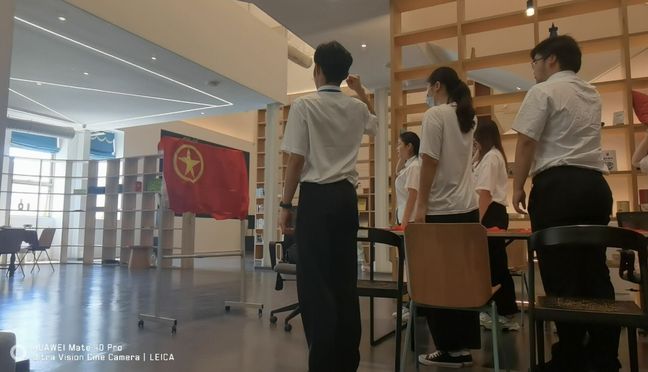 青年团员们在沉浸式学习体验中回忆救国救民的革命运动,用心感受新中国的来之不易。活动最后,在支部书记孙柳广的带领下,支部团员重温入团誓词,坚定理想信念。酒管20306支部全体团员一致表示,必将不忘初心,牢记使命,践行“以青春之我,创建青春之国家、青春之民族”的誓言。