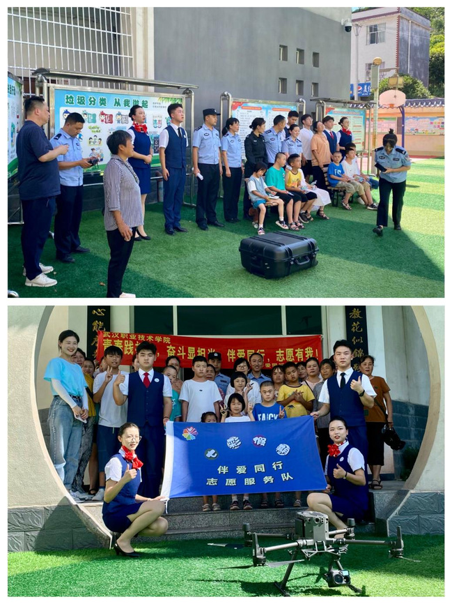 武职网讯( 通讯员刘梦)8月8日,是旅游与航空服务学院“伴爱同行 志愿有我”团队在宣恩荧屏特殊教育学校进行暑期社会实践的第11天。按照暑期社会实践前期策划,特邀请宣恩县公安局的民警叔叔阿姨来为聋哑孩子和“糖宝宝”(培智儿)进行暑期安全培训。民警授课,同学们手语同步翻译,随后还为同学们展示了无人机飞行表演。“无声胜有声”的安全课,为孩子们带来了无尽欢笑。