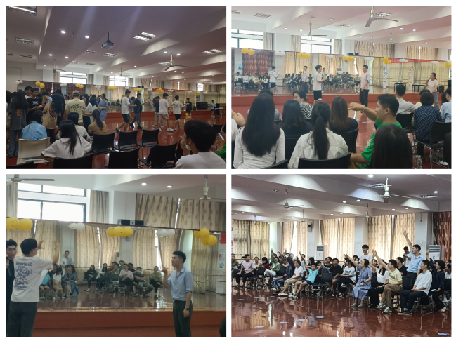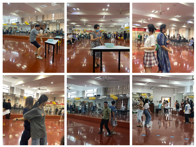 随后学院师生依次开展了“筷子夹乒乓球接力”“你画我猜”、“背靠背夹球”“诗词飞花令”等趣味团体竞赛,教职工和同学们联合组队,互助共进。竞赛持续了一个多小时,现场笑声不断,其乐融融。