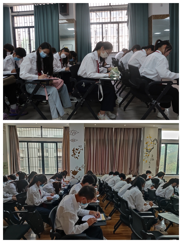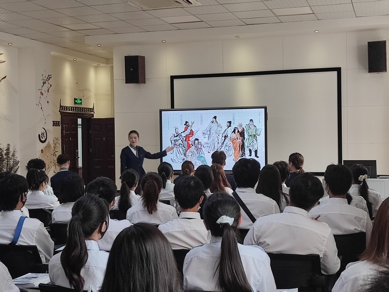 在逸云楼113活动现场,2022级新生集中观看了由辅导员熊睿琦老师编剧、高年级学长出演的短片《修君子之德,育礼仪之花》。