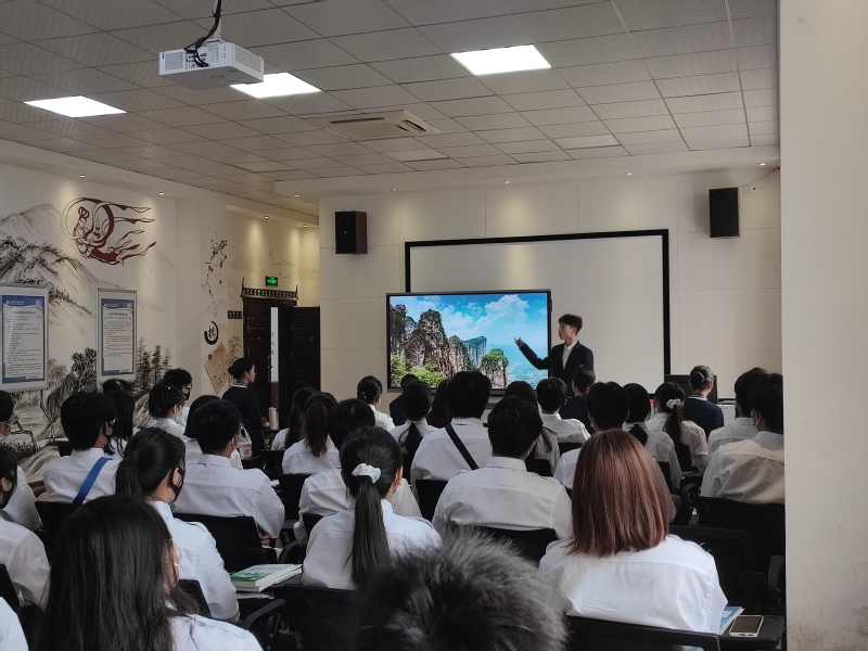旅游管理专业活动在导游博物馆开展。学长喻静、张思琪、梁跃重现了他们在导游技能大赛上的精彩表现,用精心串联的导游词让大家仿佛置身闻名遐迩的黄鹤楼、奇俊秀美的恩施大峡谷和钟灵毓秀的长江三峡。