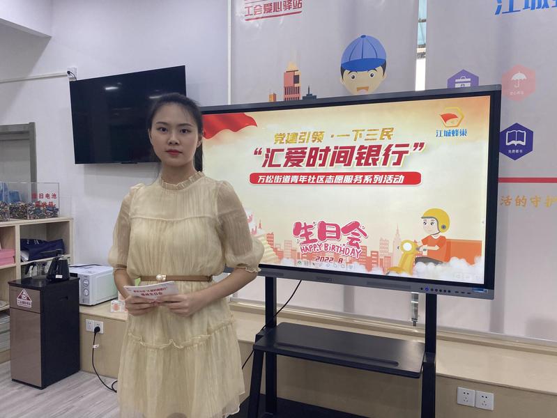 2022年7月18日至8月20日,张秋羊加入江汉区青年志愿者协会。一个多月的时间里,张秋羊身着“志愿红”,参与到普法宣传、暑期安全宣讲、暑期托管、探访老人等各项志愿服务活动中,为更多需要帮助的人奉献青春力量。