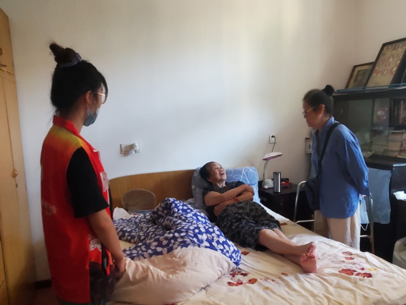 在年过九旬的张奶奶家,张秋羊和志愿者陪伴腿部受了伤的老人聊天、看电视,气氛融洽。老人把志愿者当成了自己的孙子,家里的绿豆汤煮好了,还给每人盛了一碗。