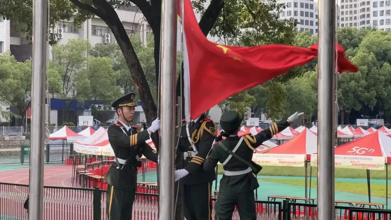 在清晨六点五十分,伴随着庄严的国歌声,五星红旗冉冉升起,所有在场的师生齐齐敬礼,以表达对祖国繁荣昌盛的自豪之情。