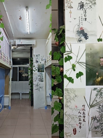活动期间,112间寝室的旅游学院学子围绕“融廉于室”主题,选用环保材料,利用身边闲置物件或回收废弃物,将廉洁文化融入装饰设计中,装点生活学习空间,展现了学子团结向上、积极进取的精神风貌,营造风清气正、崇廉尚洁的浓厚氛围,在潜移默化中增强了学生的廉洁观念。经评选,8个寝室被授予“优秀寝室”。