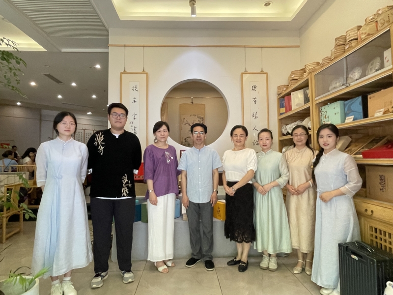 武职网讯(通讯员 吴寒 焦巧)7月21日,旅游与航空服务学院党委副书记陈玲玲带领骨干教师一行四人前往武汉市叹茶居茶馆和瓦库茶馆走访调研,受到叹茶居馆主段肇红、瓦库茶馆朱明亮总经理的热情接待。