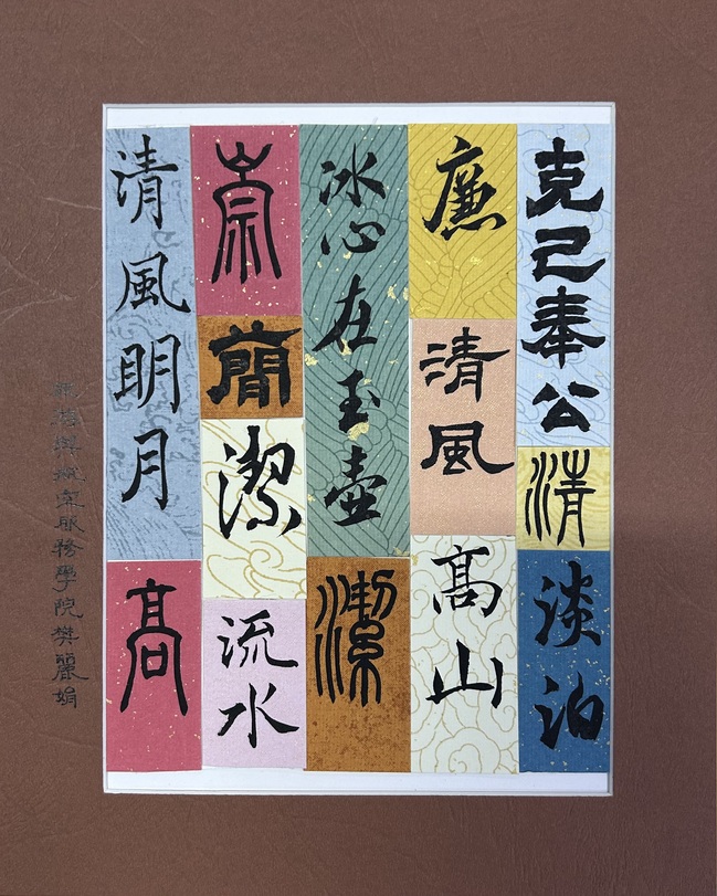 酒店管理教研室陈巧林老师的一幅硬笔书法作品《朱子家训》赏心悦目,阐明了家庭修身治家之道;空中乘务教研室汪波老师的摄影作品《赏荷思廉》,传达了荷花“出淤泥而不染,濯清涟而不妖”的美好品质;樊丽娟老师的软笔书法作品如行云流水,诠释了廉洁的真谛。