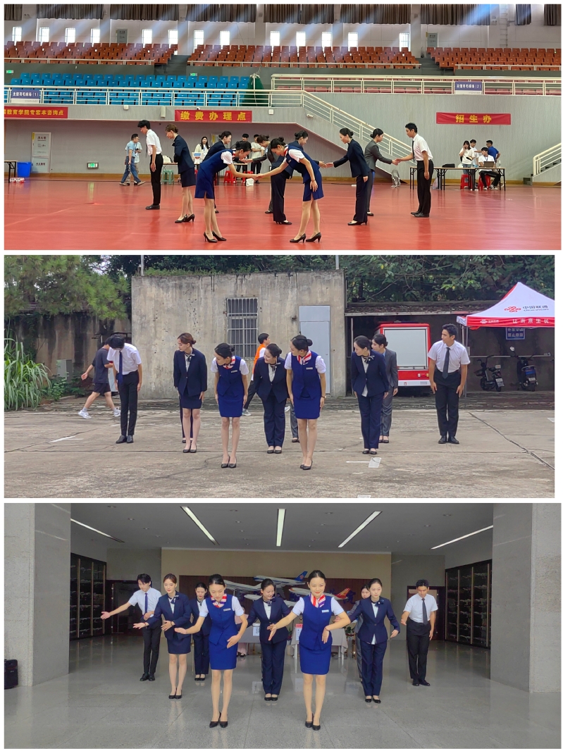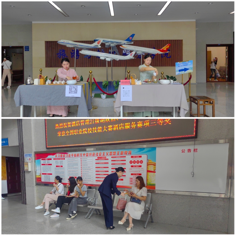 逸云楼内,师生志愿者为新生们精心准备了茶艺表演,带领新生“沉浸式”领略中国传统文化的魅力,在氤氲茗香中享受美好时光。更有礼仪协会献上精品走秀节目,“空乘的学姐们都好有气质,制服都好漂亮,我们也会有这样的制服吗?”小萌新们欣赏着表演,不时发出阵阵赞叹。惊艳的迎新活动,精彩纷呈的专业展示,早已让职业规划的种子在新生们心间萌芽。