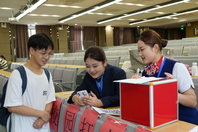 “同学,我带你过去。”“我来帮你提!”“这是你的新生手册,请收好。”……在旅游与航空服务学院新生报到现场,学长学姐们着制服“上岗”,高效快捷地为萌新们提供入学“一站式”贴心周到服务。
