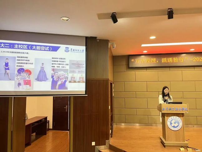 在2019年的技能大赛上,陈冯丽凭借出色的表现顺利通过了中国南方航空公司的面试,并在完成南航乘务员培训课程的同时,成功考取华南师范大学研究生,实现了学业与职业的双重梦想。在讲座中,她详细讲述了在南航和研究生阶段的成长经历,分享了如何平衡学业与生活、克服挑战并不断进取的心得体会。她的分享为在场同学提供了宝贵的启示与动力,激励大家怀揣梦想、制定规划并勇于行动。