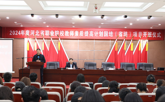 新闻网讯(通讯员 张寒 摄影 刘怀楠 王梦琪)3月3日,2024年度河北省职业院校教师素质提高计划国培(省培)项目在我校开班,来自河北省中高职院校的117名骨干教师参加培训。副校长李仁平、旅游与航空服务学院院长蒋永业出席开班仪式并致辞。湖北职业教育研究院院长李洪渠为学员们作专题讲座。