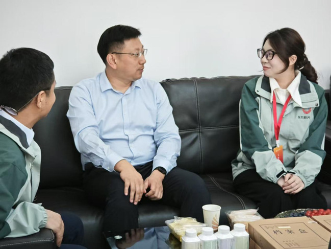 活动期间,蒋永业与正在新阳光旅行社实习的研学22301班学生代表朱欣婷进行了亲切交流。朱欣婷分享了岗位实践体会,表示在企业实习过程中提升了专业技能和职业素养。