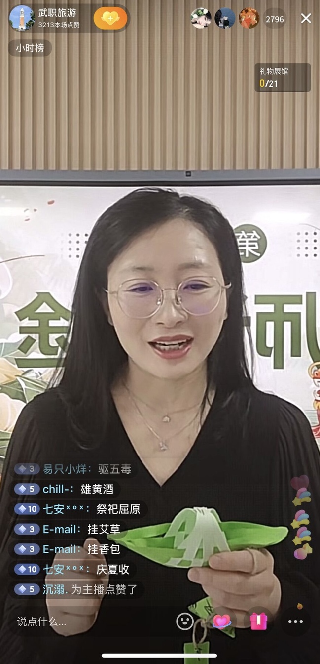 最受关注的当属直播互动环节。吴寒博士以 “一地一习俗” 为主线,把专业课《中外民俗》课堂搬进直播间,带领近3000名线上线下观众一同领略“百里不同风,千里不同俗”的文化多样性。她结合“文化生态理论”,深入解析地理环境、历史迁徙对民俗形成的影响,让专业知识与端午习俗相映照,形成生动的“互文”。