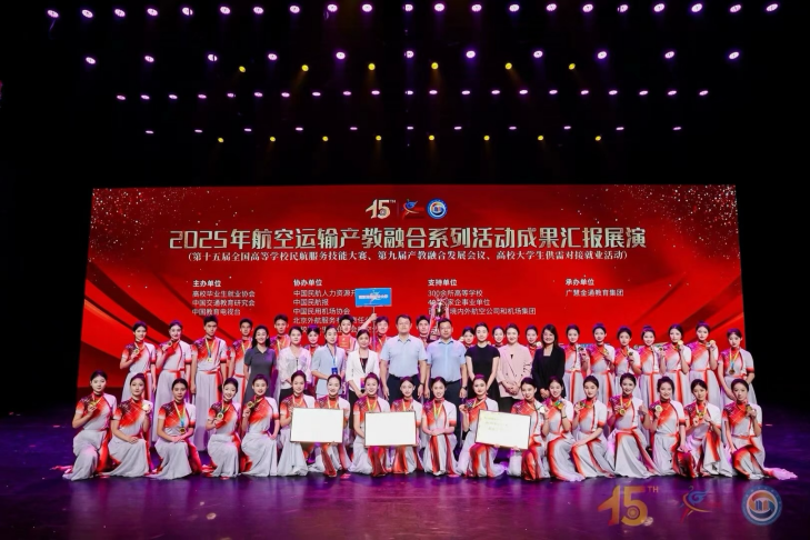 2025年航空运输产教融合系列活动7月24日在北京圆满落幕,武汉职业技术大学在活动中喜报频传,学校摘得“就业工作先进单位”荣誉称号,空乘专业代表队成功卫冕高职高专类团体综合冠军并斩获两项单项奖。校长何保华、旅游与航空服务学院负责人出席活动。