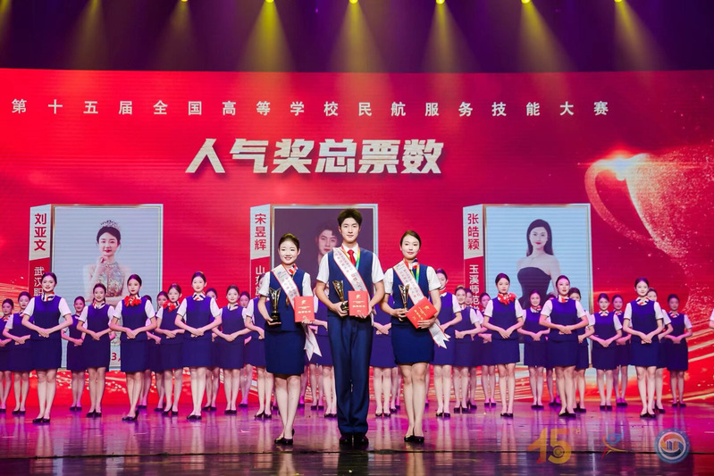 在大赛各项单项赛事中,武汉职业技术大学空乘专业学子同样表现不俗。在民航知识与英语竞赛中,空乘学子凭借深厚的理论知识和流利的英语表达能力,荣获一等奖。这一成绩体现了选手们扎实的专业功底,彰显了学校在专业教学中对国际化视野和语言能力培养的重视。此外,他们还在民航安全服务技能竞赛中获得三等奖,选手刘亚文荣获最佳人气奖第二名,选手朱玥颖荣获“形象大使”称号,进一步证明了我校空乘在民航服务领域的全面实力。
