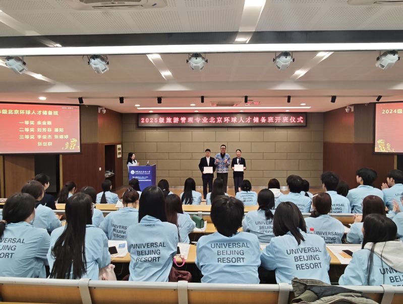 随着开班仪式的圆满落幕,2025级人才储备班的培养工作正式拉开帷幕。旅游与航空服务学院分党委书记谢丽教授表示,未来学院将与北京环球度假区进一步加强沟通协作,不断拓展合作领域,深化合作内容,共同探索人才培养的新模式、新途径。“我们期待通过持续深化的校企合作,培养出更多具有国际视野、创新精神和实践能力的优秀人才,为文旅行业的发展注入新的活力。”