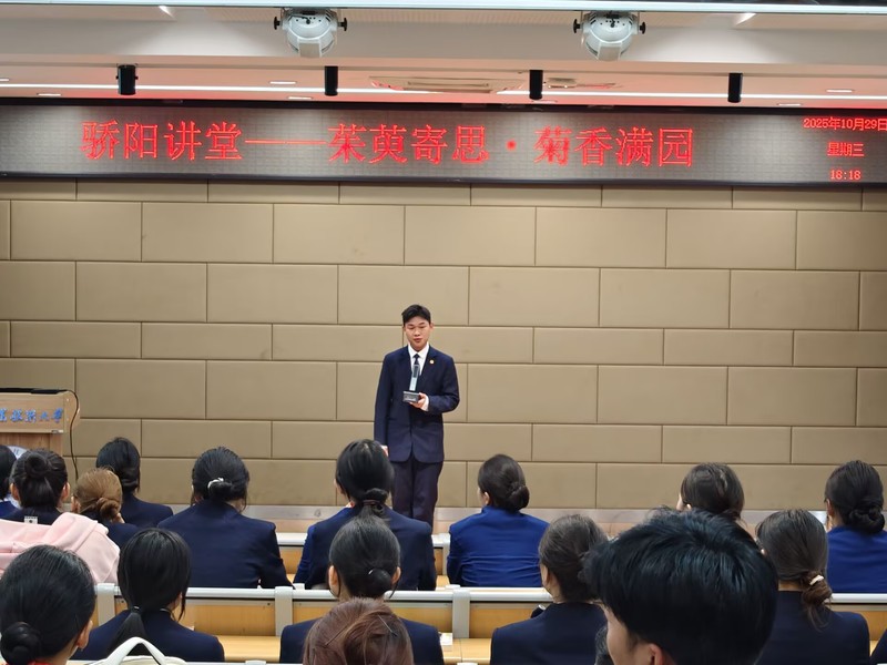 新闻网讯(通讯员杨光 大学生记者向颖)10月29日重阳节,旅游与航空服务学院在逸云楼113报告厅举行了以“茱萸寄思·菊香满园”为主题骄阳讲堂活动,在温馨融洽的氛围中顺利开展。本次活动面向第33批次预备党员与第34批次入党积极分子,围绕重阳节的文化内涵与时代意义,结合党建引领基层治理、青年责任担当等议题,展开了一场内容丰富、思考深刻的交流分享。