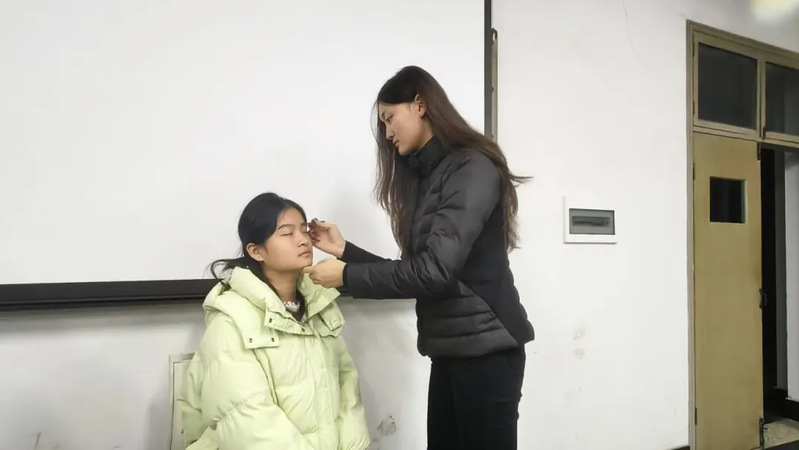 暮色渐浓,教室化身为沉浸式实训场。怀着“让学弟学妹少走弯路”的初心,学姐们精心准备了适配民航场景的美妆工具与实操手册,从职业妆容的“避坑指南”到盘发造型的“标准流程”,倾囊相授职业形象实操经验。“民航妆容要兼顾清爽与持妆,底妆要轻薄,重点遮盖瑕疵”“眉形要贴合眉骨,突出干练感”,学姐们一边演示一边讲解,针对学妹们的五官特点一对一调整细节,手把手教大家掌握遮瑕手法、眼线弧度与唇色选择的核心技巧,助力大家打造既符合职业规范,又能彰显个人气质。