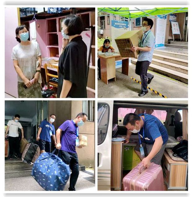 在东四学生公寓,教师志愿者们手提行李箱,肩扛行李袋,一趟趟地帮学生转运“宝贝财产”,甚至还把私家车作为行李物品周转车……闷热的夏日,几趟下来汗水早已浸湿衣衫,但老师们说“这都是自己的孩子,为孩子做事从来不觉得辛苦。”