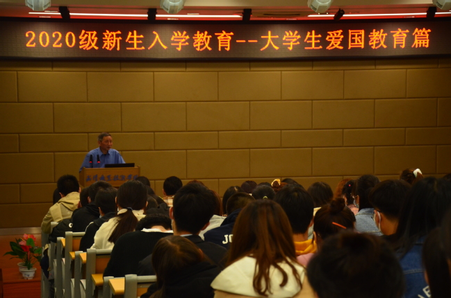 学校关工委常务副主任谈朝阳为新生开展爱国爱校教育