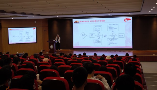 10月13日,一部《我是党员我先上》的战疫纪录片拉开了旅游与航空服务学院新生入党启蒙教育的序幕。该院专职组织员周雯讲述了党的性质、宗旨、原则及党领导中国人民所取得的伟大成就,为在场新生介绍党员发展的流程,入党应履行的手续等,引导他们树立正确入党动机。随后,第25批次发展对象杨雨曌讲述了自己的入党历程,鼓励新生积极向党组织靠拢,争取早日加入党组织。