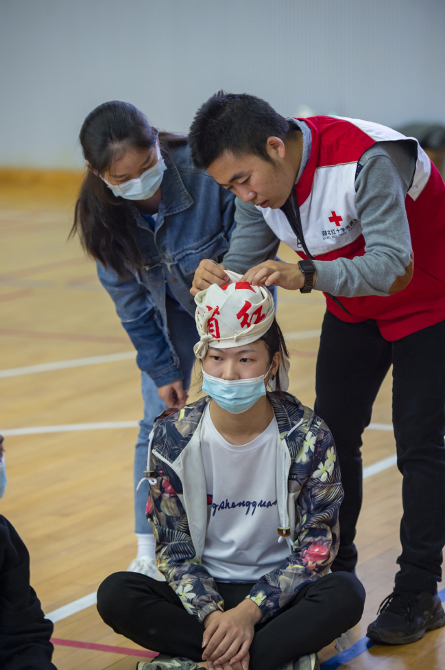 武职网讯(通讯员吴玮婷 王兰)10月15日至18日,湖北省红十字会应邀为旅游与航空服务学院213名在校师生进行红十字会救护员资质培训和考核,以期传播急救常识,助力空中乘务专业学生考取“1+X”职业等级证书。经过16课时的培训和演练,该院参训师生均顺利通过急救常识考核,获得了红十字会救护员资质。