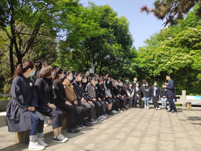 “大家是否注意到陵园内有三层台阶,每层都有27级,这背后有着什么深刻寓意呢?”该院分团委书记、酒管会展学生党支部纪检委员徐冰旸抛出的问题引起大家的思考。“是为了纪念‘二七’大罢工!”队伍中传来了正确的回答。一堂特殊的党课就这样在施洋烈士陵园开讲了,师生通过微党课重温那段可歌可泣的热血历史。