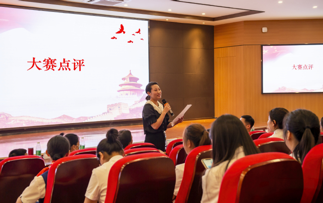 旅游与航空服务学院院长李俊在大赛总结时讲道:“这是旅游学院举办的第一届导游职业技能大赛,是旅游管理专业的教学成果展示,也是课程思政成果展示。将党史学习、红色历史教育与专业技能有机结合起来,全面提升学生综合素质,强化了专业技能。希望旅院学子们从党史中赓续精神血脉,汲取奋进力量。”