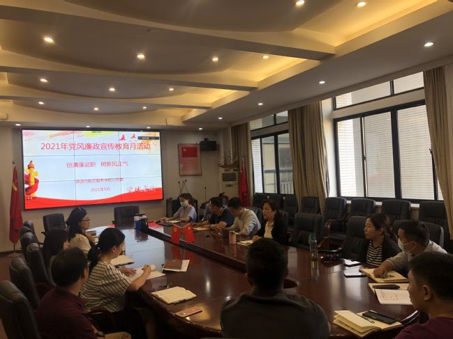 武职网讯(通讯员周雯 摄影马瑞阳)9月以来,旅游与航空服务学院围绕“创清廉武职 树新风正气”活动主题,认真制定《2021年旅游学院党风廉政建设宣传教育月活动方案》,组织了廉政教育集中学习、观看警示教育片、书记上党课、党纪党规知识测试等多项活动,扎实开展宣传教育月活动,进一步增强全院教职工廉洁自律意识,加强政治理论和作风建设,筑牢思想防线。